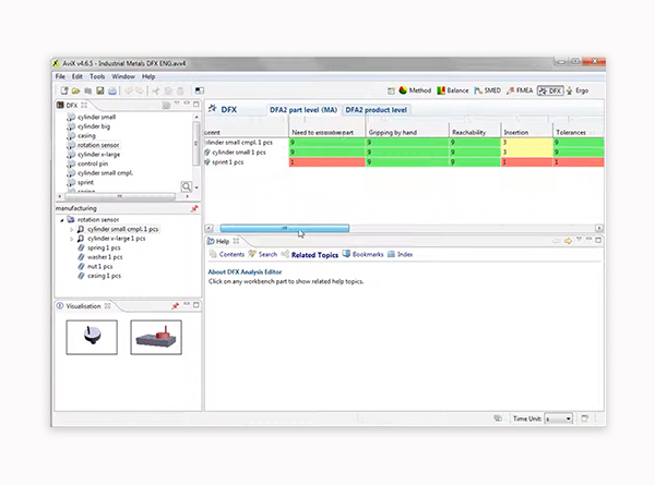 Focused on how to design products for greater manufacturability. Simplifies work by evaluating assembly aspects.