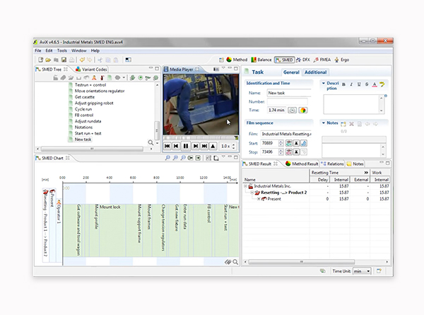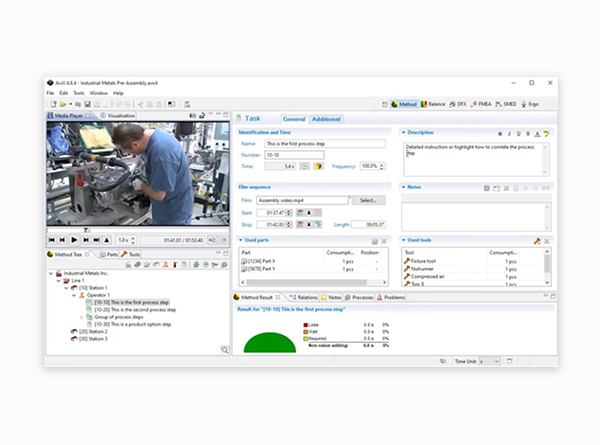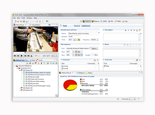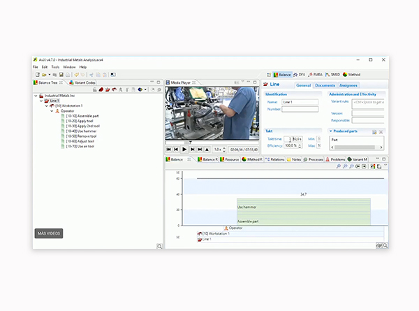 Perform time study analysis of work operations to create the data needed for line balancing and product calculations.