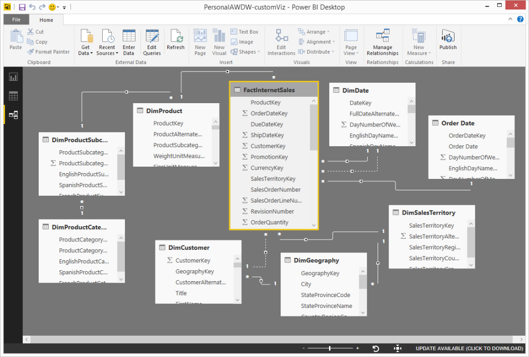 Build scalable and reusable data models. Define relationships between tables and create semantic models for business logic.